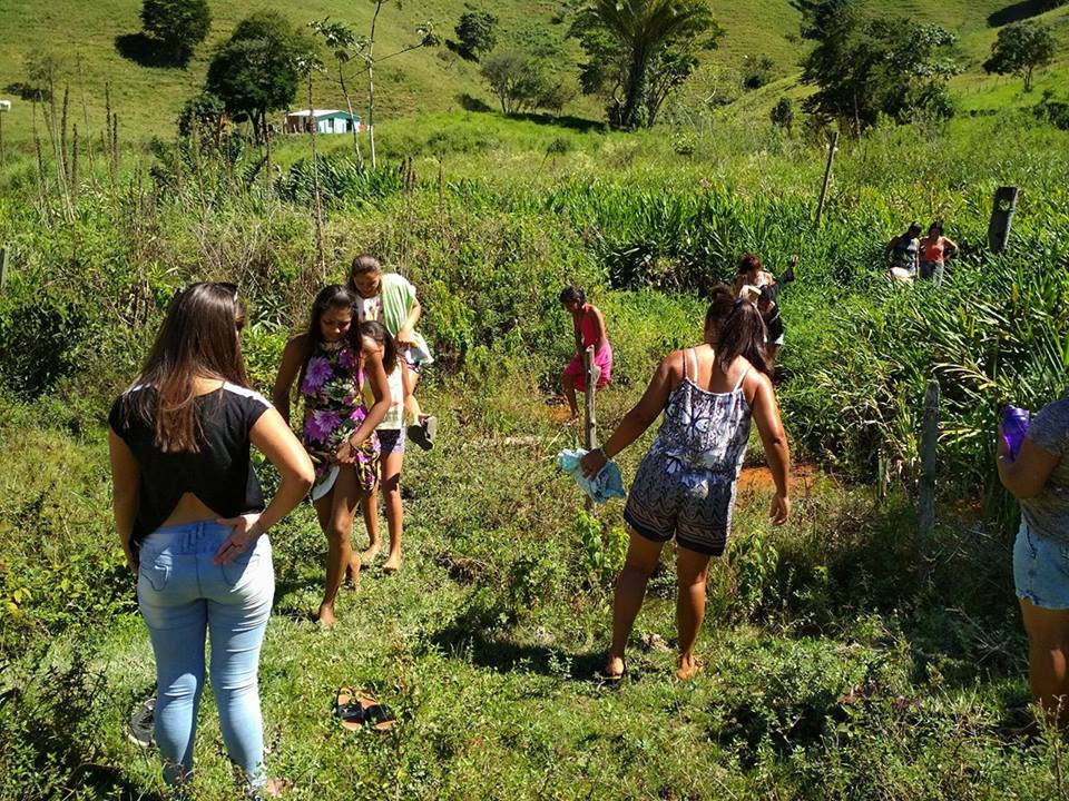 As mulheres puderam ainda visitar a área da comunidade, conhecer as nascentes e cachoeira, trazendo discussões sobre a importância de preservar e cultivar a diversidade de espécies de plantas e animais, e sobre os danos que os agrotóxicos causam para a saúde humana e do meio ambiente com contaminação do solo e da água.