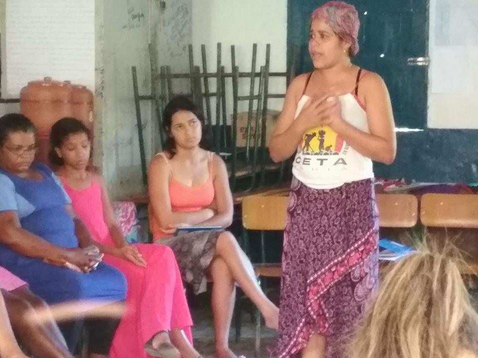 Nos dias 19 e 20 de maio, foi realizado o Encontro de Mulheres, na comunidade Cachoeira Ribeirão do Largo, para discutir e trocar experiências sobre agroecologia e alimentação saudável. Participaram 60 mulheres das comunidades de Água Preta, Quilombo Lagoa de Melquíades e Amâncio, Rio Pardo, Quilombo Baixa Seca, Taquarusu e Cachoeira, localizadas na região sudoeste da Bahia. A companheira Mara do Movimento CETA participou do debate e oficina, trazendo sua experiência na produção agroecológica na comunidade Dois Riachões, em Ibirapitanga, no baixo sul da Bahia.Também foi abordada a questão do trabalho familiar que compõe o modo de produção e reprodução da vida camponesa.