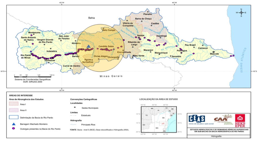 Pesquisadores do Centro de Estudos e Ação Social – CEAS e da Universidade realizaram levantamento de informações junto à Agência Nacional de Águas – ANA, fizeram visitas de campo, principalmente, na região da Central Geradora Hidrelétrica – CGH no Machado Mineiro.