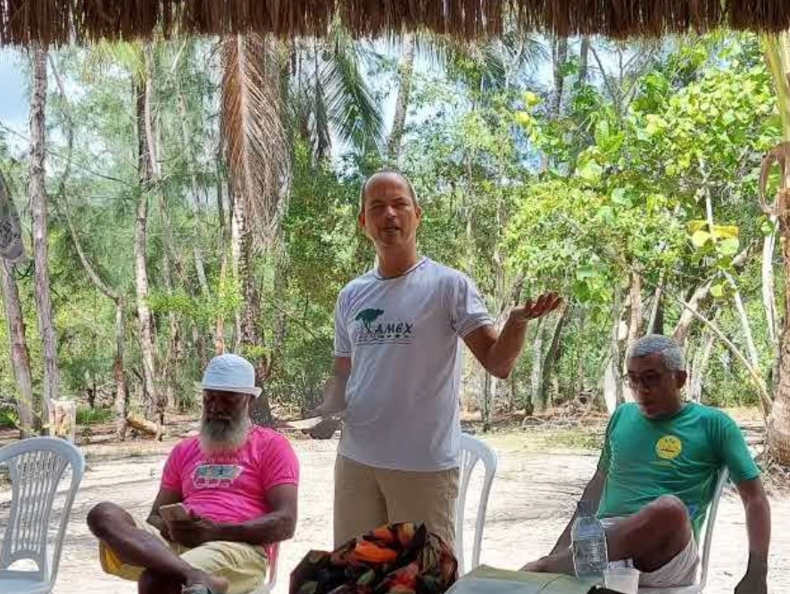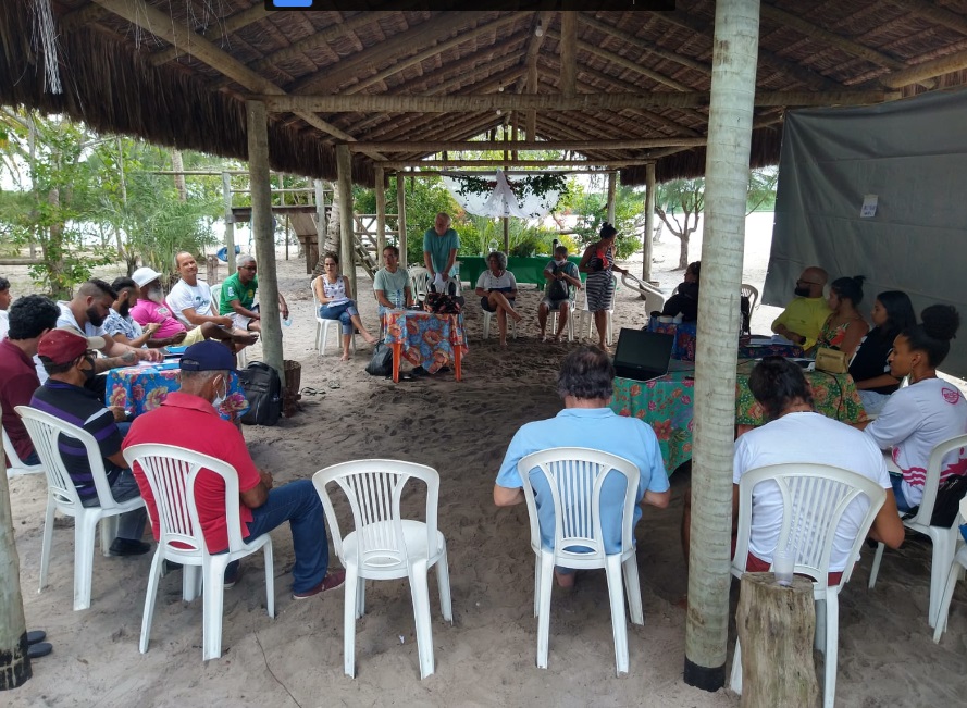 Nos dias 08 e 09 de abril, aconteceu o Encontro da Articulação em Defesa das águas do Rio Pardo, em Canavieiras – BA. A oportunidade possibilitou a partilha das experiências e ações desenvolvidas pelas organizações no contexto pandêmico e dos desafios enfrentados por estes grupos, seja no enfrentamento aos projetos do agrohidronegócio, desenvolvidos historicamente na bacia (eucaliptocultura, mineração, carcinicultura), seja no anúncio de boas práticas desenvolvidas pelos grupos para a defesa das águas e do território (cercamento de nascentes, produção e comercialização agroecológica e gestão popular das águas).