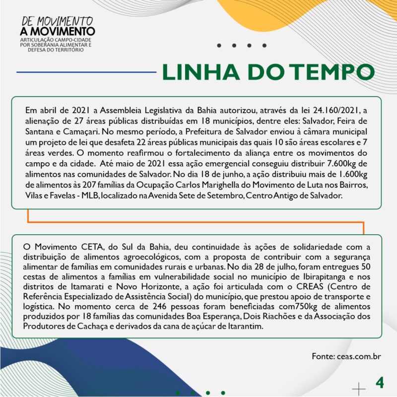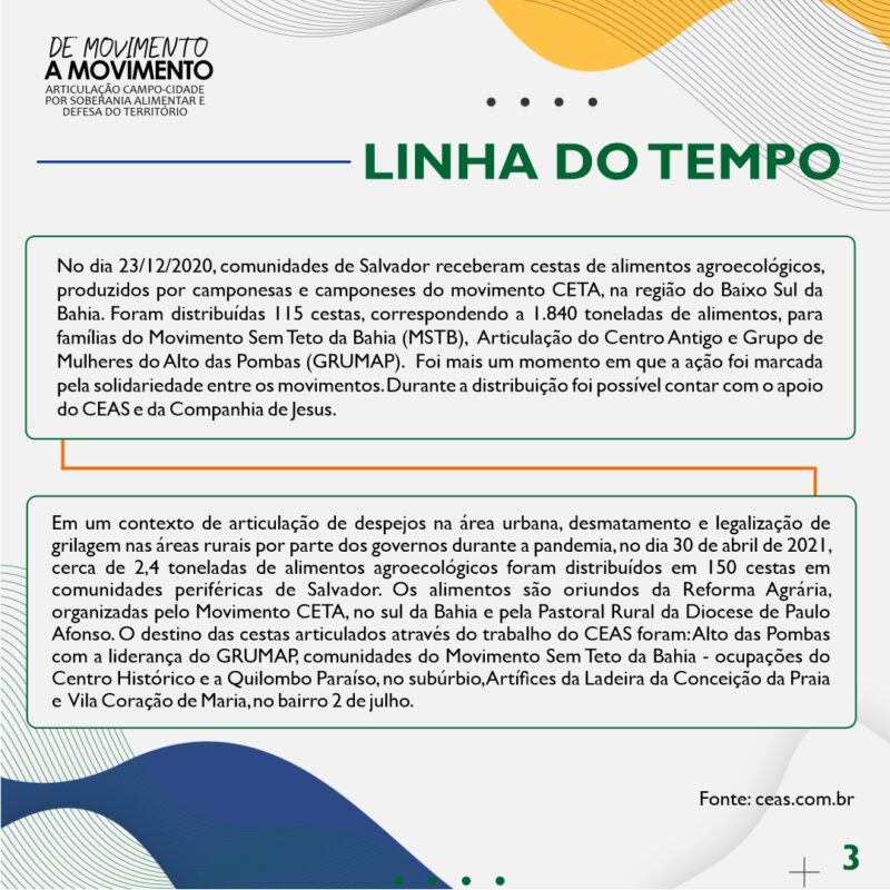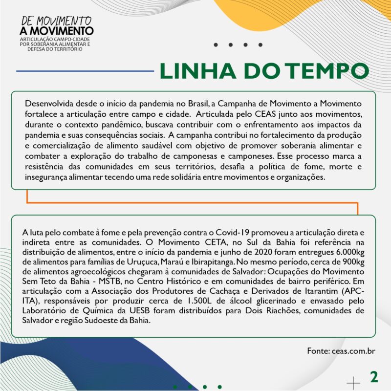 Retomar a memória das nossas ações é direcionador para os afetos e lutas. Por isso, construímos uma linha do tempo do que foi o trabalho realizado através da Campanha de Movimento a Movimento durante a pandemia.