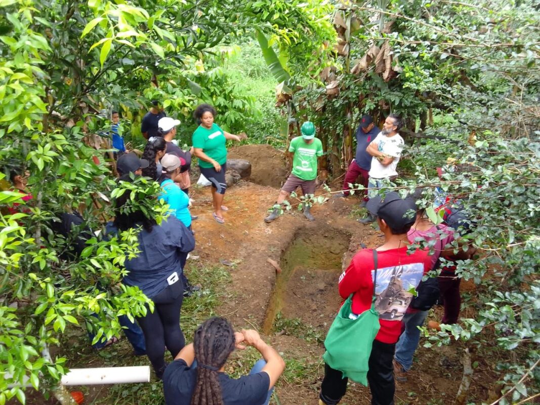 Além das experiências dos SAFs e do tratamento de águas residuais, as famílias também tiveram a oportunidade de conhecer a história de luta e resistência do Movimento CETA na região e de alguns dos seus projetos em curso, como o viveiro de mudas e unidade de produção de chocolate orgânico e agroecológico. Tudo isso com uma alimentação regada ao modo cabruca, como o refogado de coração de banana e a farofa de banana com nibs de cacau produzidos no assentamento.