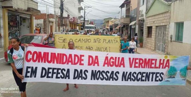 Várias pessoas saíram do centro pastoral e caminharam pelas ruas de Itarantim, apresentando faixas que demonstravam contrariedade à implantação de empresas de mineração no município.