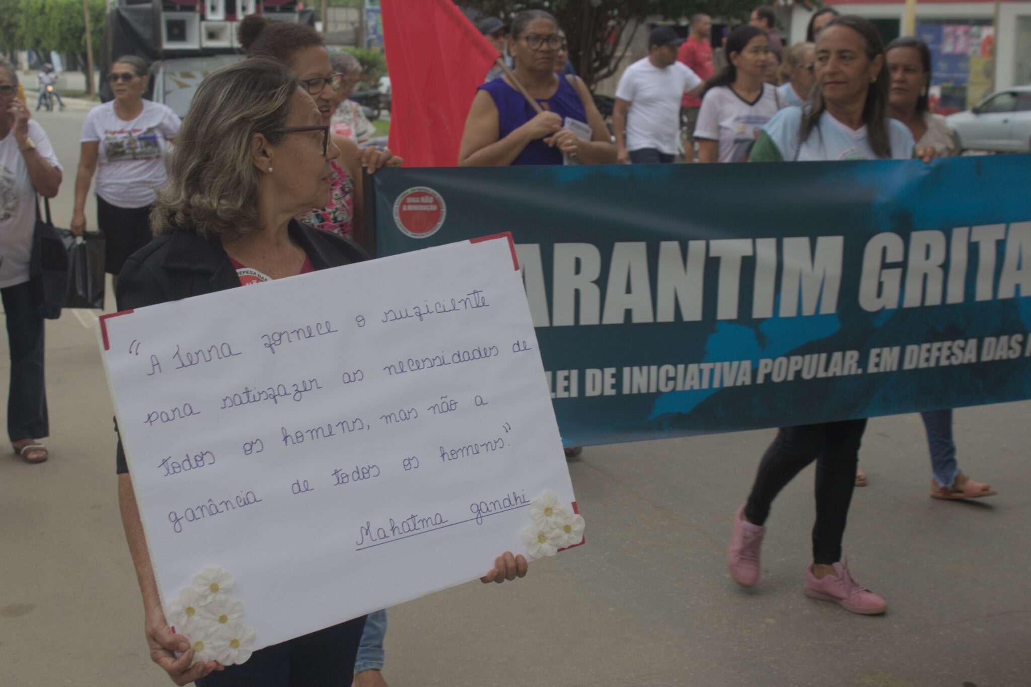 Aldenice Barros, representante da Comissão Popular, afirmou que é fundamental manter a mobilização para alertar os cidadãos do município: “a população precisa acordar para a realidade dos problemas que estamos vivendo relacionados ao meio ambiente, às questões climáticas, porque isso vai chegar até nós.”