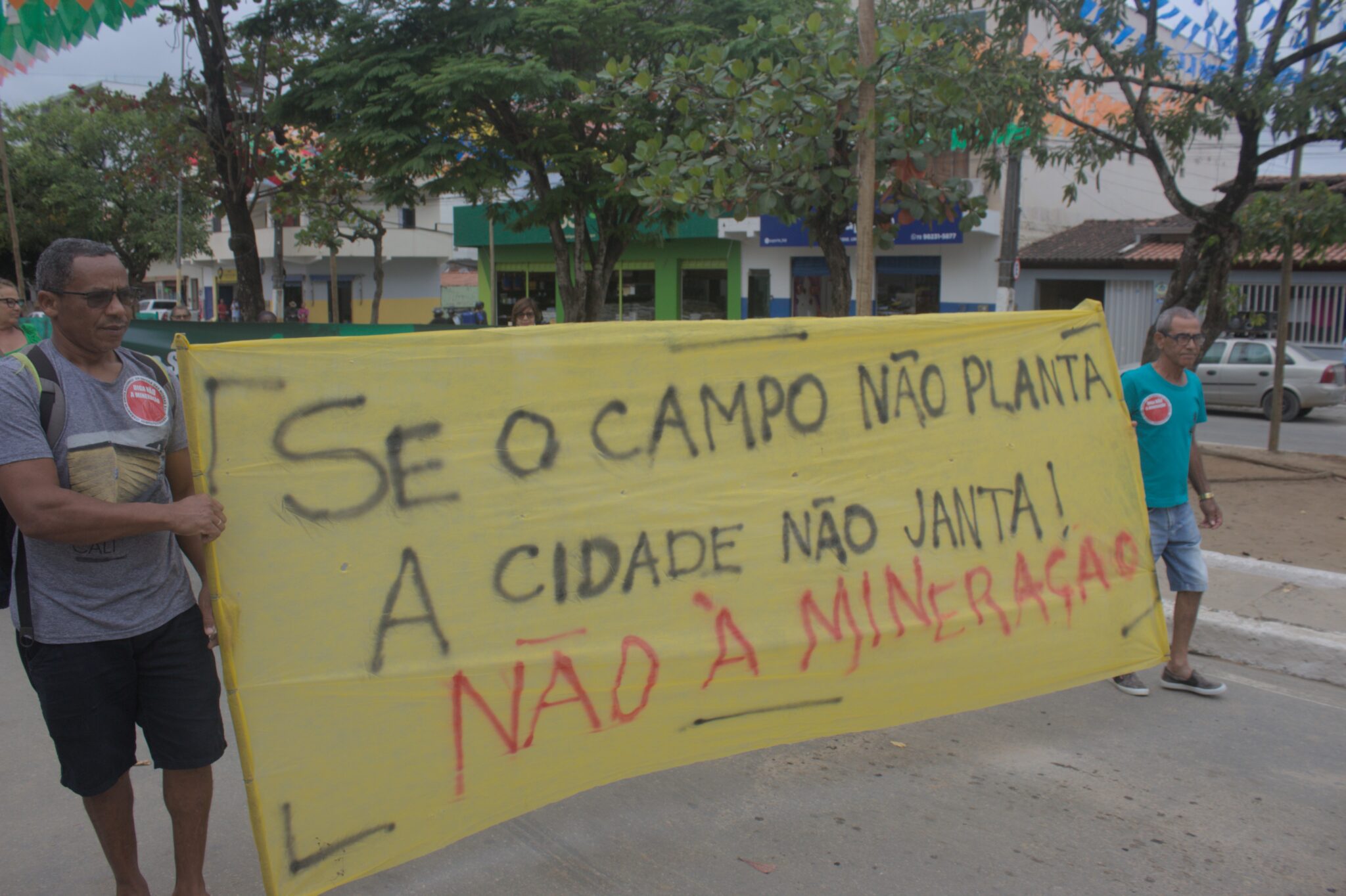 A manifestação organizada pela Comissão Popular de Meio Ambiente de Itarantim contou com o apoio da Articulação Rio Pardo Vivo e Corrente, do Centro de Estudos e Ação Social (CEAS) e do Movimento pela Soberania Popular na Mineração (MAM).